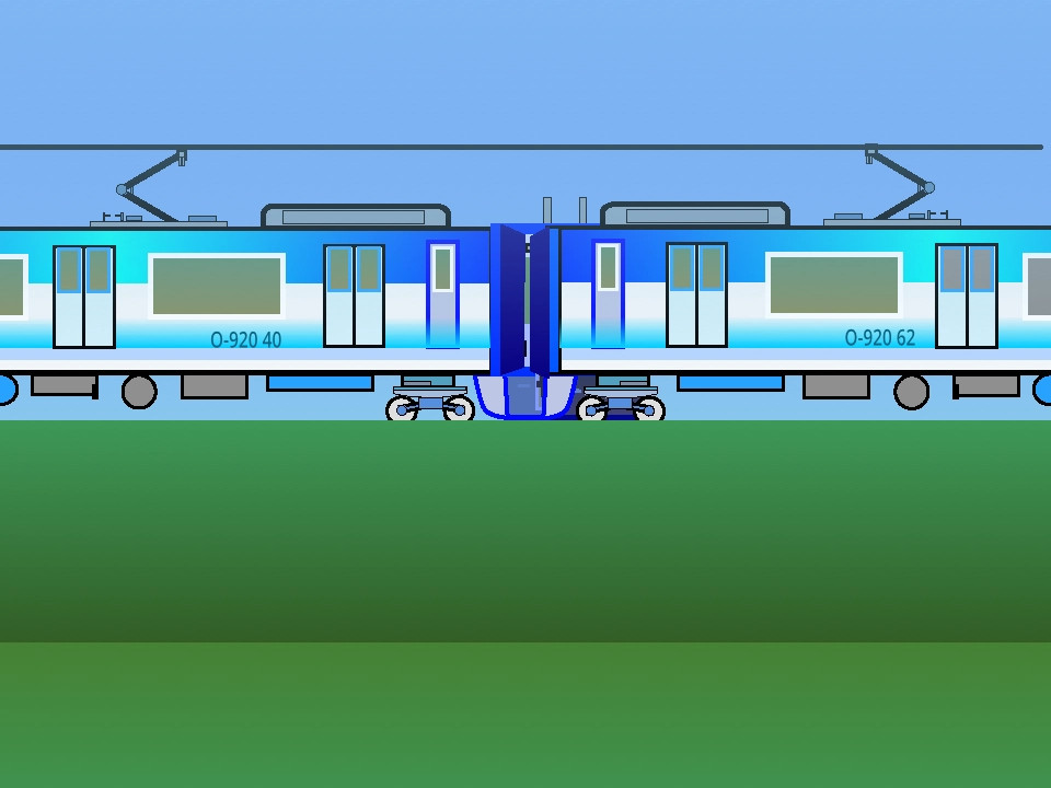 架線柱は緑色になっており、風景に馴染みます、